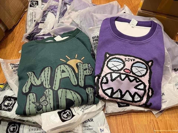 Áo nỉ lót lông in hình Monster và DAPUMI 2 màu tím, xanh