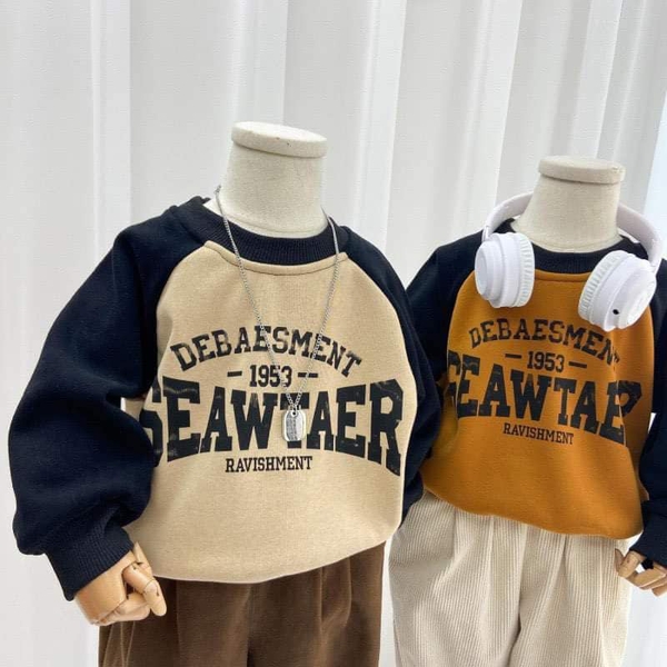 Áo nỉ lót lông SEAWTAER 2 màu nâu, be cho bé trai