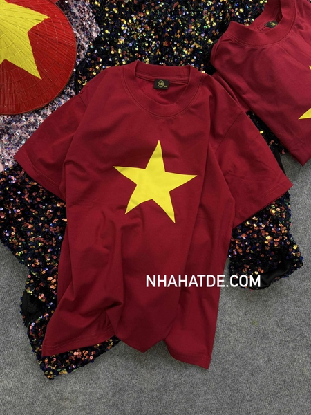 Áo phông cộc tay màu đỏ đô in sao vàng Drew house