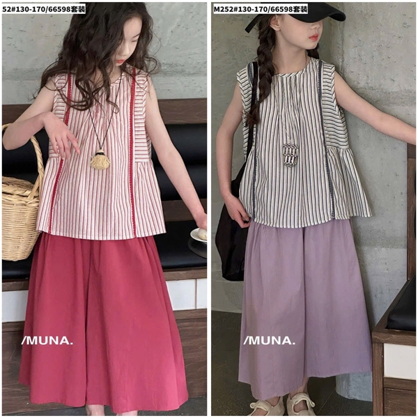 Bộ áo kẻ sát nách Munaya Studio quần lửng ống rộng 2 màu Đỏ và Xám