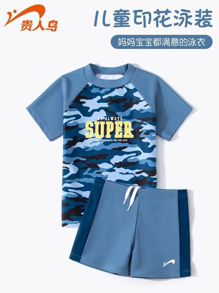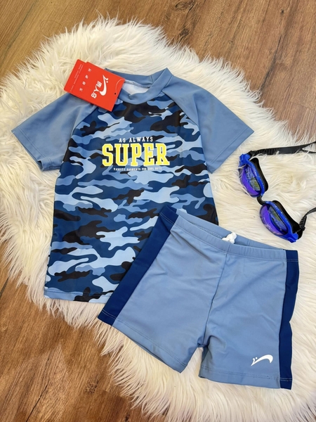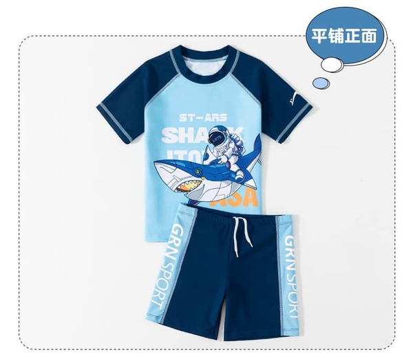 Bộ bơi cộc tay bé trai Yuke Super 2 màu xanh nhạt, xanh đậm
