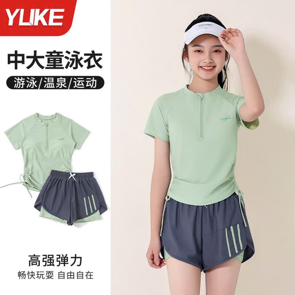 Bộ bơi Created YLike cộc tay màu xanh quần sooc 2 lớp bé gái