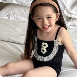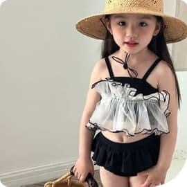 Bộ bơi hai dây style Hàn 3 mẫu màu đen cho bé