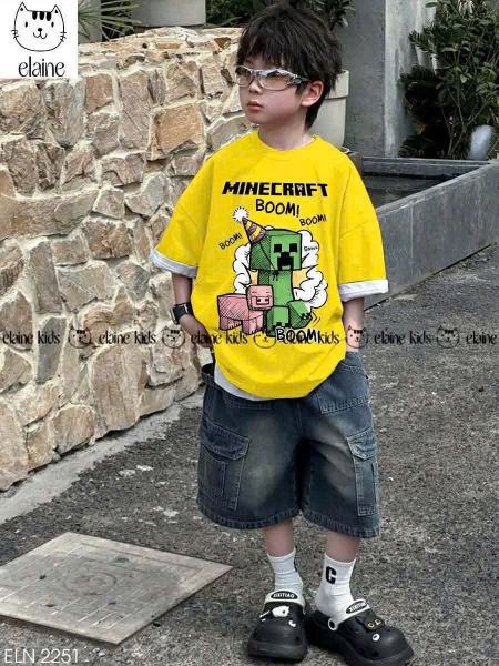 Bộ bé trai cộc tay áo vàng MineCraft ELAINE quần jean