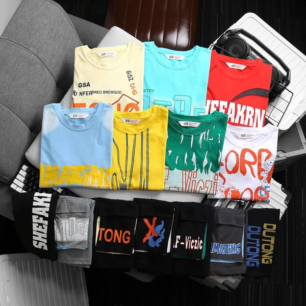 Bộ cộc tay H&M 7 màu in chữ Amazing, Tong, Sorry Your...size đại cho bé trai