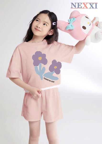 Bộ cộc tay quần sooc hồng cam NEXXI Flower in love hoa tím