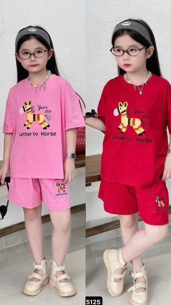 Bộ cộc tay Kunkun Kids thêu ngựa Your 2026 2 màu đỏ, hồng bé gái