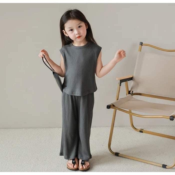Bộ cotton tăm sát nách quần ống suông 3 màu kem, ghi, đen bé gái