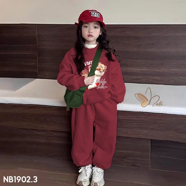 Bộ nỉ 2 da Nabi đỏ Teddybear bo gấu
