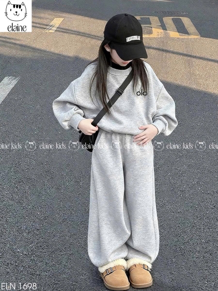 Bộ nỉ dài tay Ola hãng Elaine màu ghi