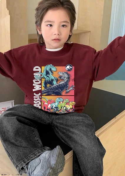 Bộ nỉ Elaine Jurrassic World khủng long áo nỉ đỏ quần jean