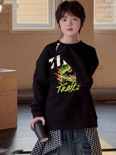 Bộ nỉ Elaine Titantrails khủng long áo nỉ đen quần jean