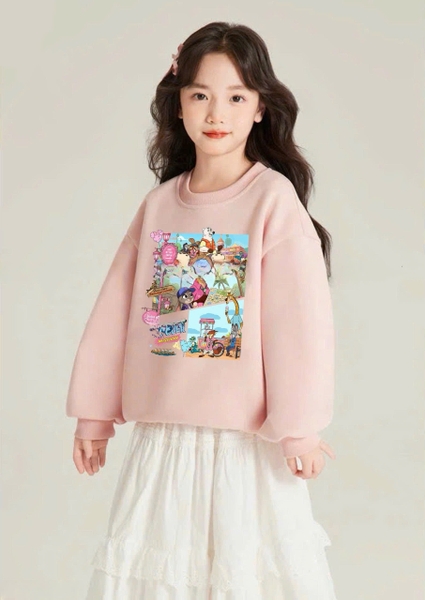 Bộ nỉ Zootopia Elaine màu hồng cáo và thỏ chân váy maxi trắng