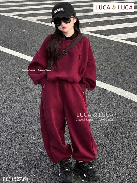 Bộ nỉ Luca&Luca dài tay thêu ngựa đỏ bo gấu