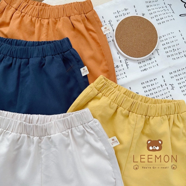 Quần đùi Leemon kaki cạp chun basic vạt bầu 4 màu