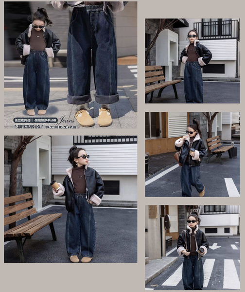 Quần jeans lót lông dáng suông cho bé