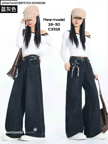 Quần jeans suông màu đen kèm belt có tag chữ Dior, charm da beo
