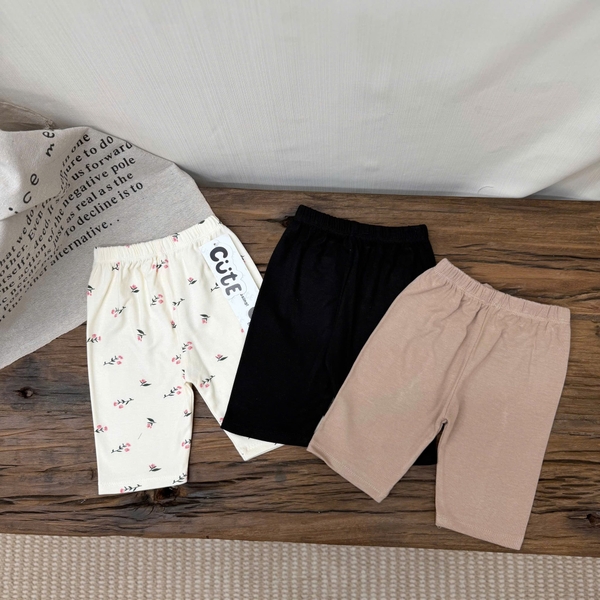 Set 3 quần legging lửng cho bé gái hoa nhí, đen, nâu