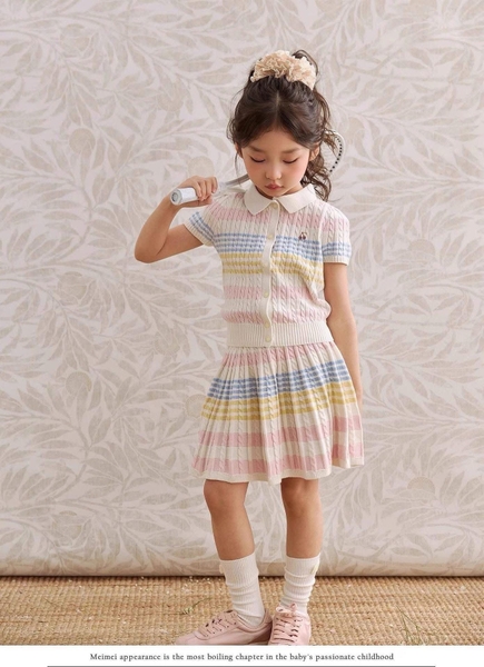 Bộ áo cộc tay chân váy len dệt kim sắc màu pastel