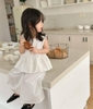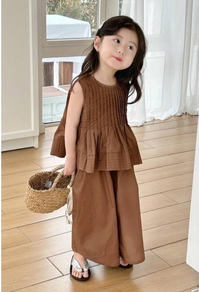Set bộ thô Sofia Candy áo peplum sát nách mix quần ống rộng 2 màu trắng, nâu