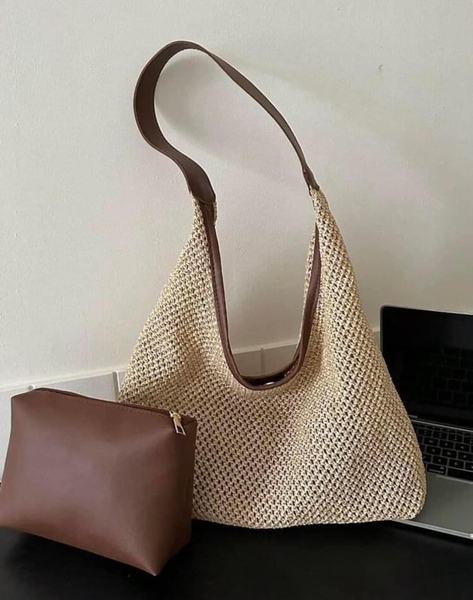 Túi cói lưới kèm túi nâu size 25.5 x 33.5 x 11.5cm