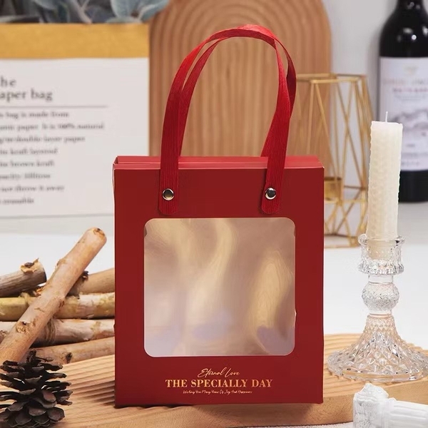 Túi xách giấy hộp vuông mặt kính 4 màu đỏ, xanh, trắng, hồng