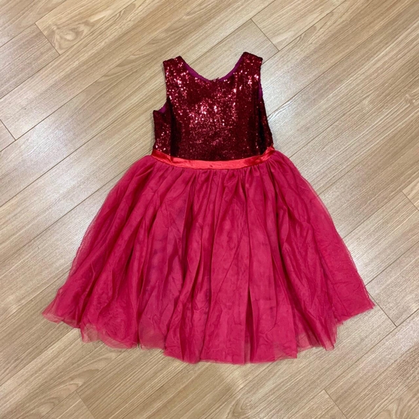 Váy cộc tay Next hồng kim sa chân váy voan