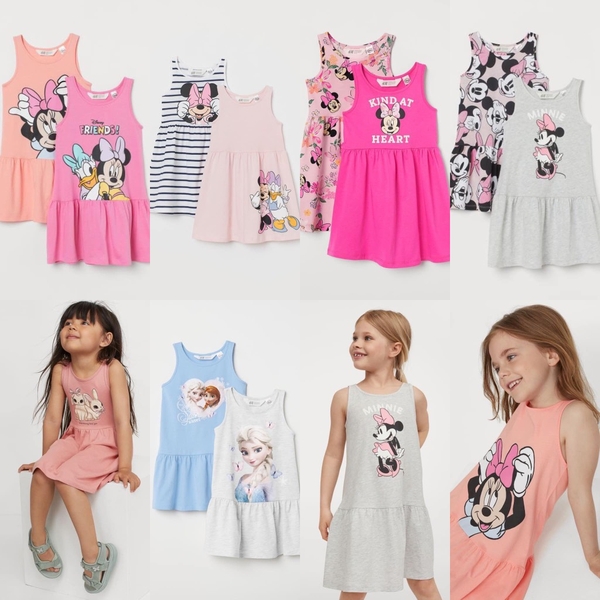 Váy sát nách H&M nhiều mẫu Minnie Daisy cam hồng, Thỏ hồng, Elsa Anna xanh, Minnie kẻ ngang