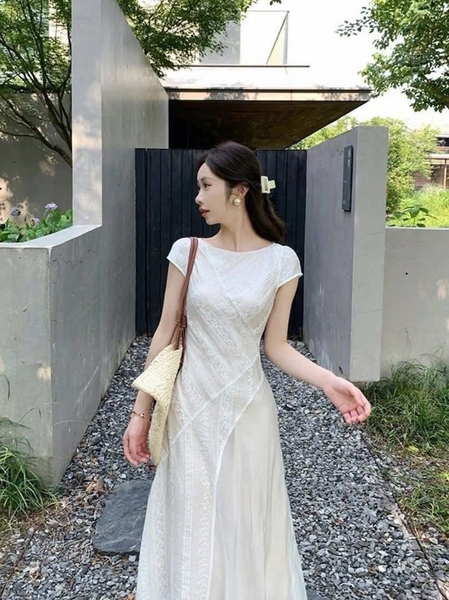 Váy voan hoa tay hến màu kem hãng WG.WE